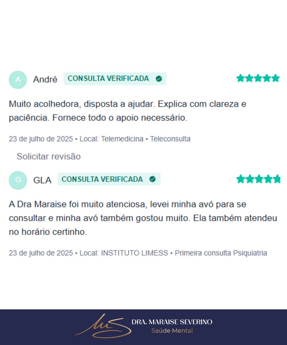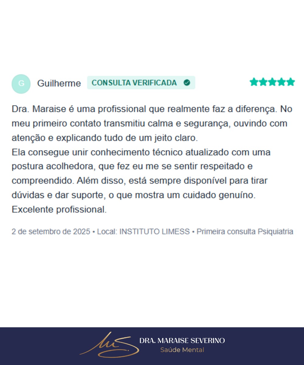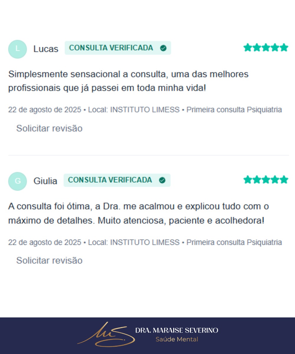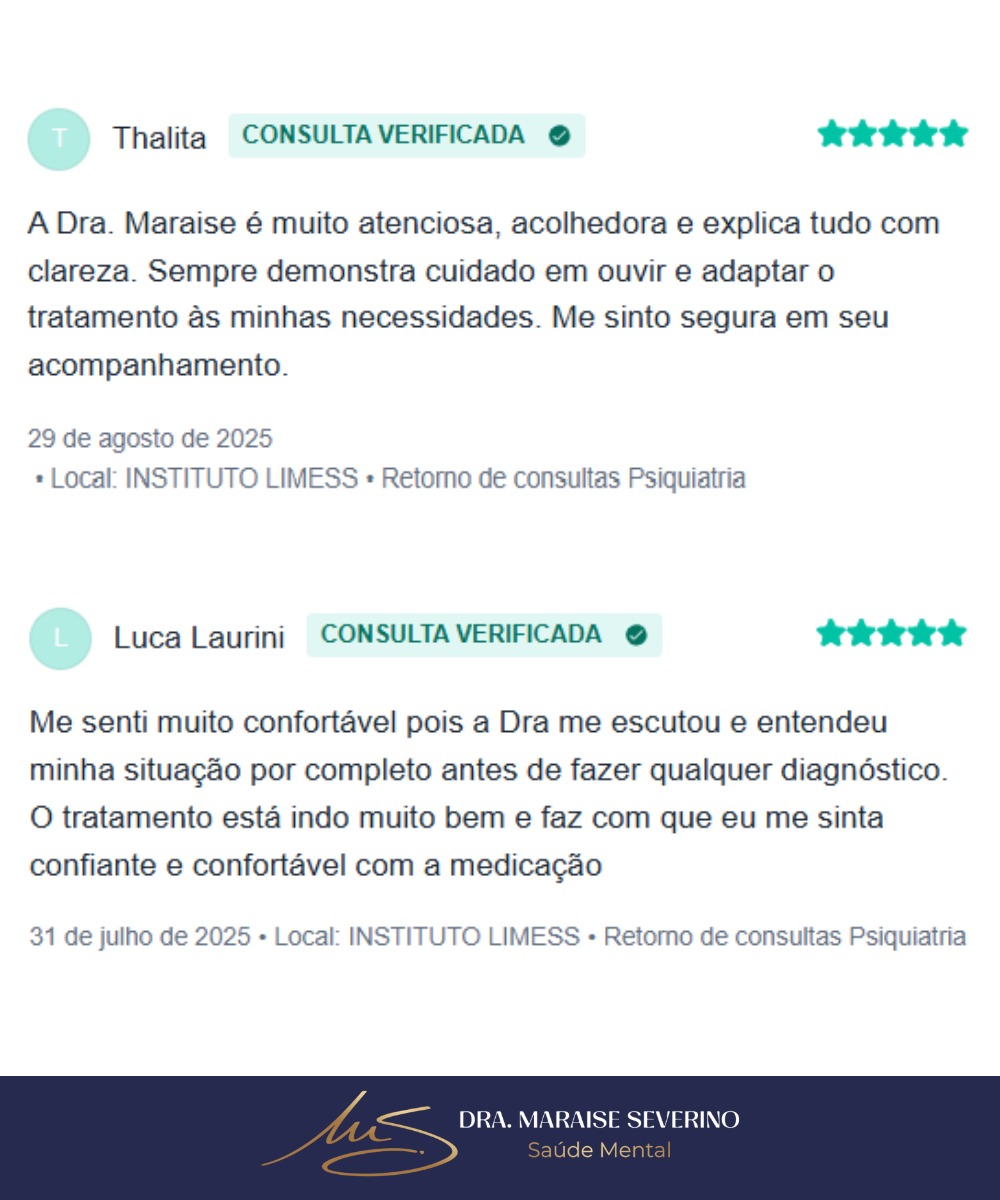 Consultas psiquiátricas com a Dra. Maraise Severino – atendimento acolhedor, profissional e sigiloso, presencial em São Carlos-SP ou online. Agende a primeira consulta com 10% OFF no pix.