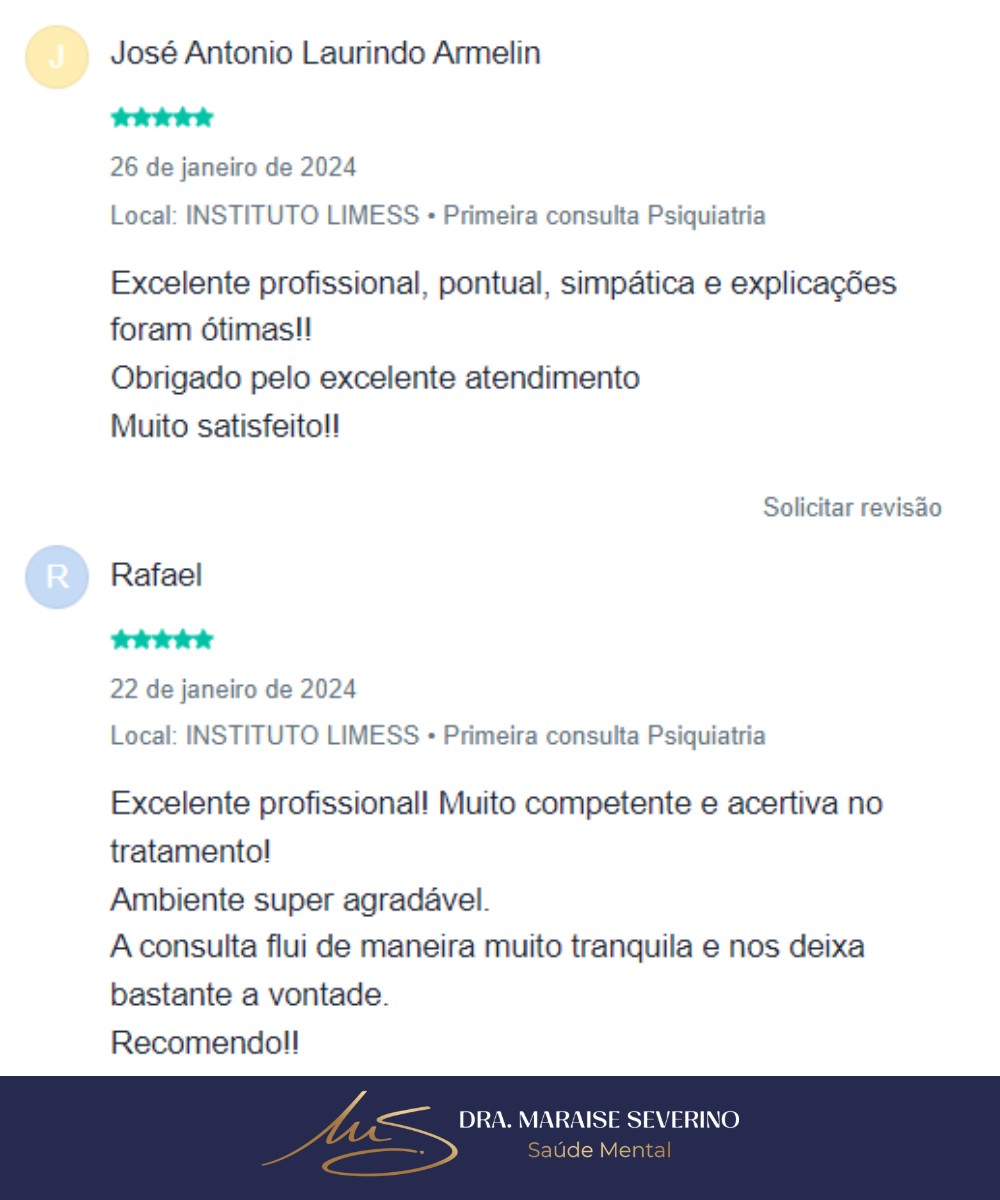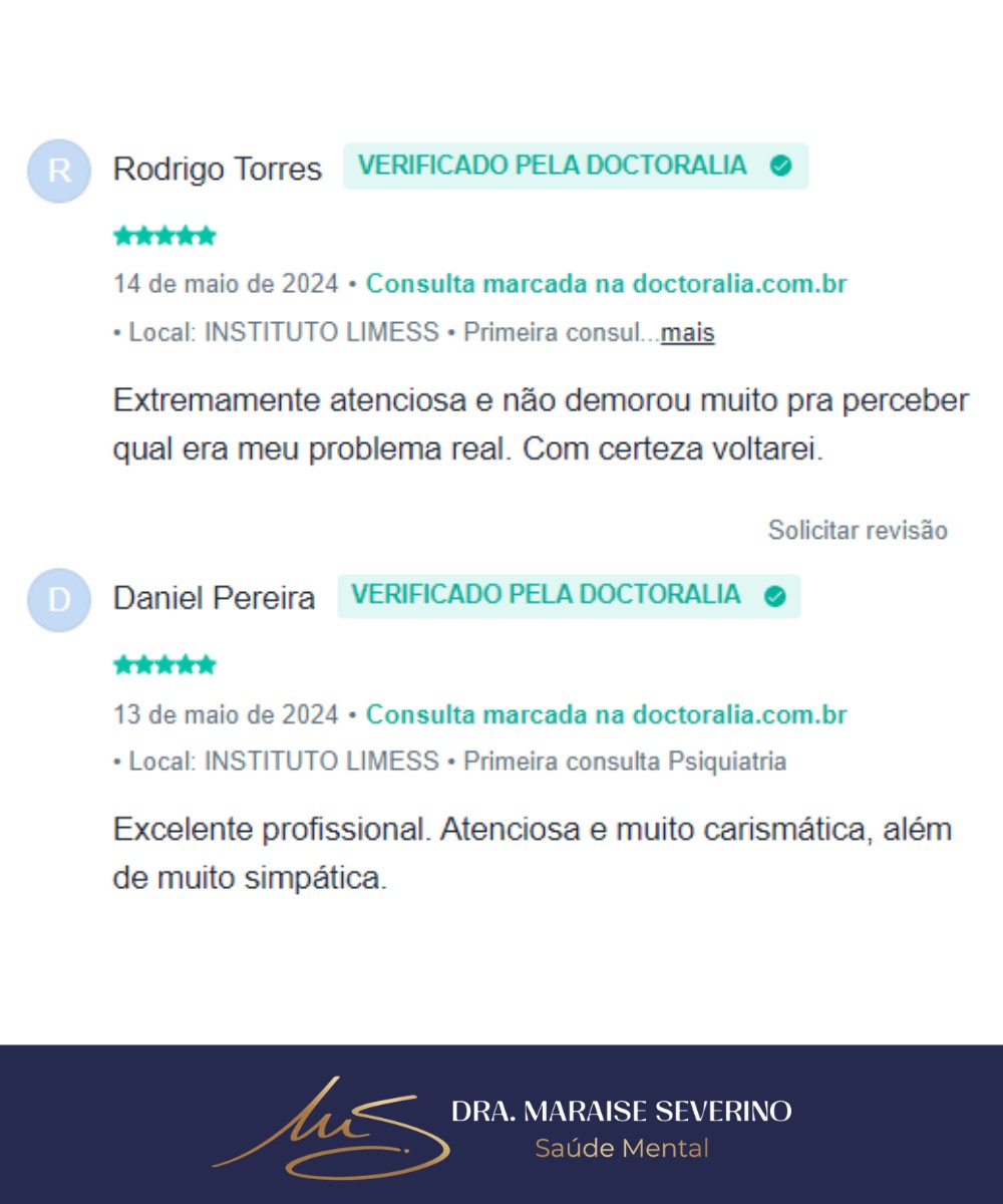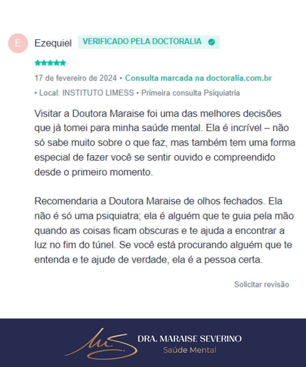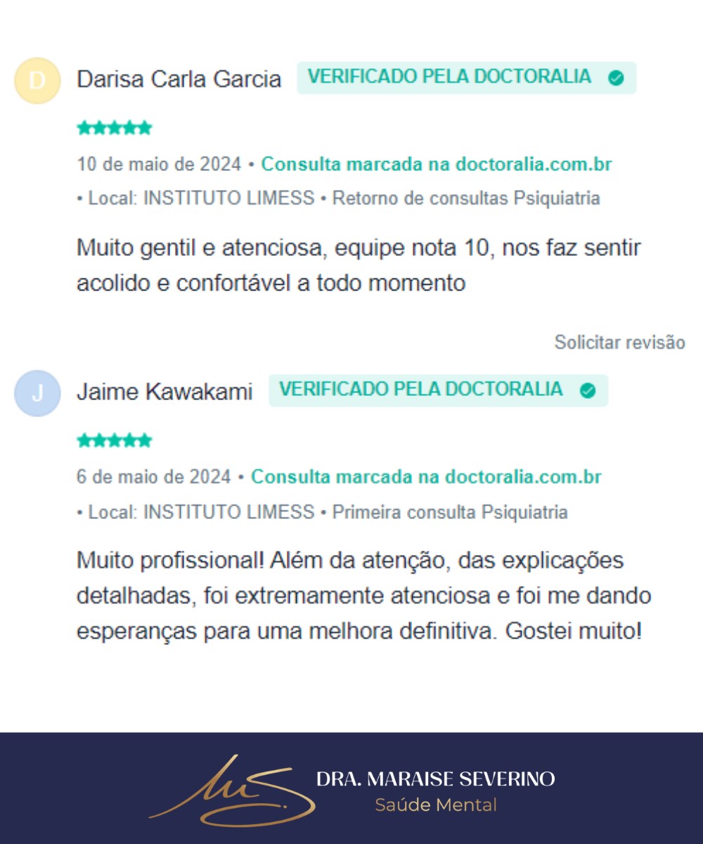 Consultas psiquiátricas com a Dra. Maraise Severino – atendimento acolhedor, profissional e sigiloso, presencial em São Carlos-SP ou online. Agende a primeira consulta com 10% OFF no pix.